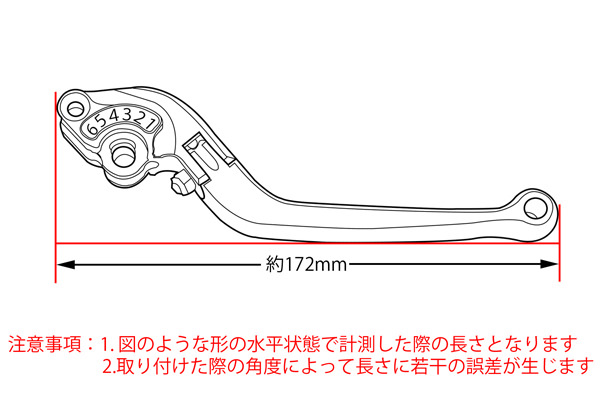 ※アジャスター(調整つまみ)は写真の7色よりお選びいただけます。※取り付け車種により純正レバーに付属する部品をご使用いただく場合がございます。※レバー交換後は必ず異常が無いか確認を行ってください。※モニターの環境等の理由により画像の色と実物の色が若干異なって見える場合がございます。※画像はイメージです。※この商品は予告なしに価格や仕様を変更する場合がございます。高強度アルミニウム合金素材6061を精密加工したレバー本体にアルマイト処理を行うことにより高級感を与え、高精度を実現しました。純正マスターシリンダー、クラッチレバーホルダーに装着できます。握りやすい形状により操作に必要な力を低減。レバーが可倒式になっておりますので転倒等の衝撃によるダメージを最小限に抑えます。6段階アジャスターにより最大約28mmまで調整が可能となっており、好みのレバー位置にセッティング可能ですので手の小さな女性でも快適な操作性を確保出来ます。※アジャスター(調整つまみ)は写真の7色よりお選びいただけます。