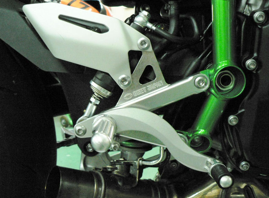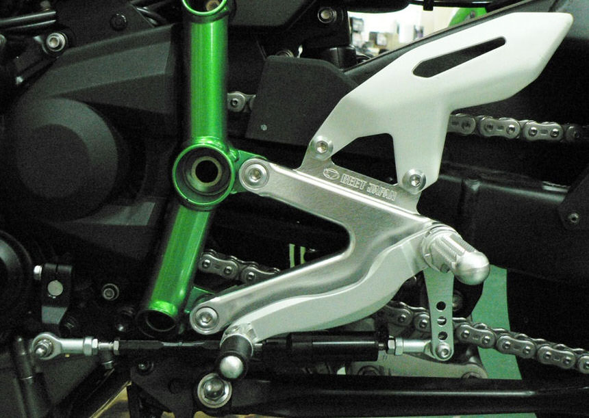 ※本品は固定式です。高い耐久性と軽量化をコンセプト に、徹底した安全設計のもと、リプレイスステップでは初めて熱間鍛造製法を取り入れたHYPER BANK(ハイパーバンク)に最新のNinja H2 用が登場!・ペダル及びステップバーに、高強度の鍛造パーツを採用。・万が一の転倒等のアクシデントにも、ダメージを最小限に抑える様、チェンジ及びブレーキペダルのつま先部に、可倒式を採用。・製品は、80%以上が組みあがった状態の為、短時間で取り付け可能。・受注生産により、ステップバーが可倒式も製作可能。※逆チェンジシフトは不可。ポジションBACK/UP:10 mm/10 mm