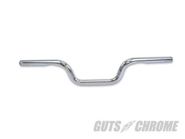 少し立ち上がりの急なハンドルです。センター幅がナローに造られているので左右の幅が抑えられて造られています。ボバー等の軽快な車体にマッチするかと思います。汎用(純正スイッチボックス使用車)センターフラット部:約135mm最大高:100mm最大幅:720mmプルバック:100mmMade in TAIWAN