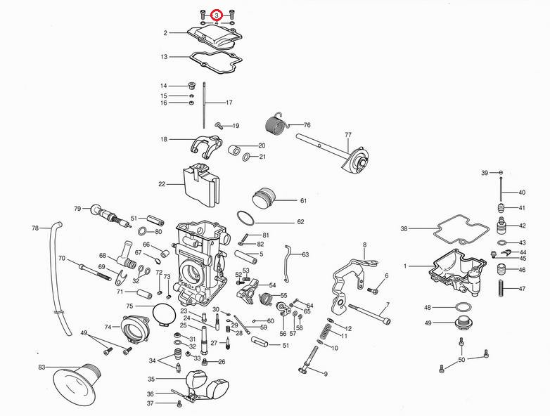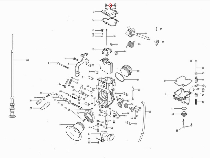 TMR キャブレターマルチ画像中の番号:96TMRシングルキャブレター スモール(Φ28-34)画像中の番号:3TMRシングルキャブレター ビッグ(Φ36-40)画像中の番号:3
