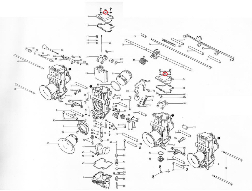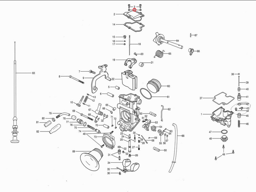 TMR キャブレターマルチ画像中の番号:97TMRシングルキャブレター スモール(Φ28-34)画像中の番号:4TMRシングルキャブレター ビッグ(Φ36-40)画像中の番号:4