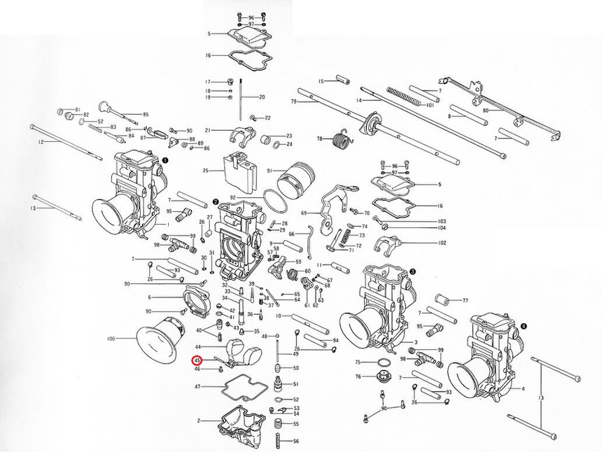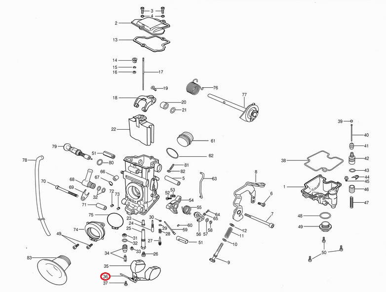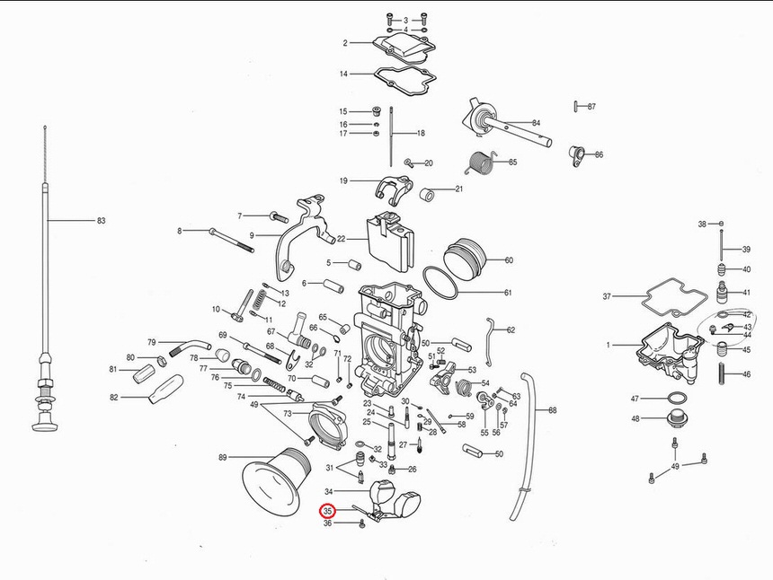 TMR キャブレターマルチ画像中の番号:45TMRシングルキャブレター スモール(Φ28-34)画像中の番号:36TMRシングルキャブレター ビッグ(Φ36-40)画像中の番号:35