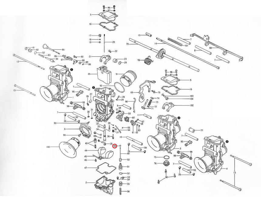 TMR キャブレターマルチ画像中の番号:48TMRシングルキャブレター スモール(Φ28-34)画像中の番号:39TMRシングルキャブレター ビッグ(Φ36-40)画像中の番号:38