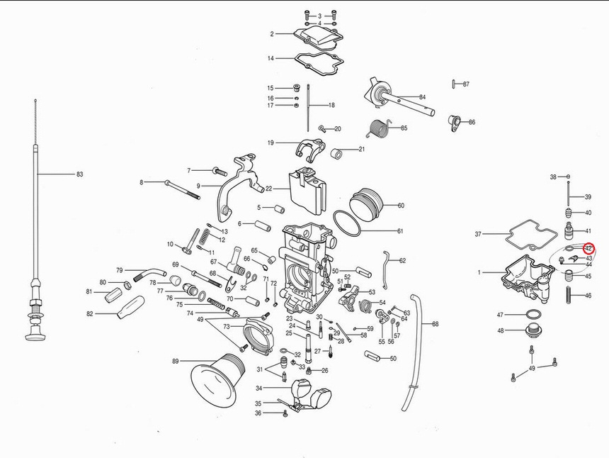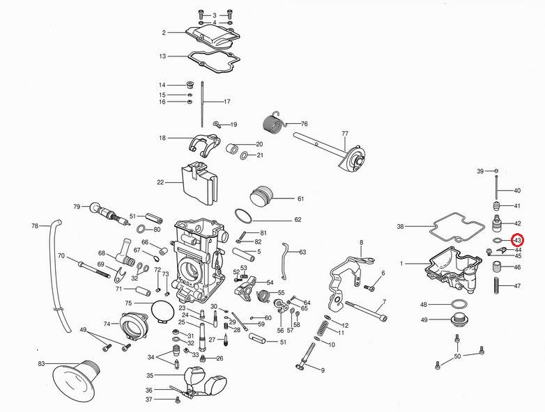 TMR キャブレターマルチ画像中の番号:52TMRシングルキャブレター スモール(Φ28-34)画像中の番号:43TMRシングルキャブレター ビッグ(Φ36-40)画像中の番号:42