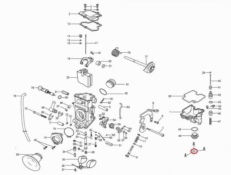 TMR キャブレターマルチ画像中の番号:90TMRシングルキャブレター スモール(Φ28-34)画像中の番号:50