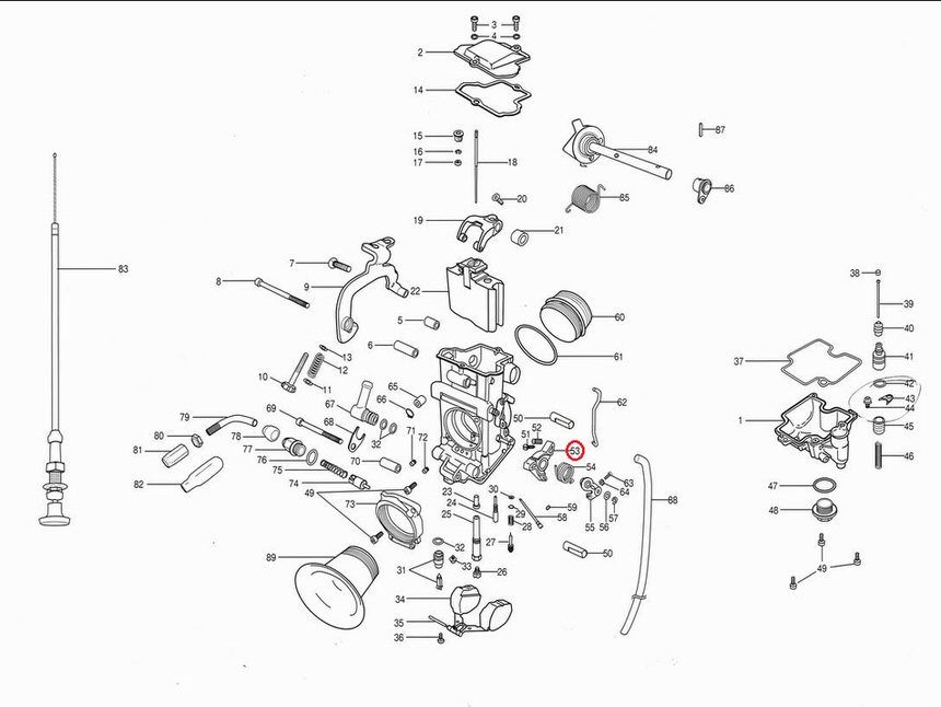 TMR キャブレターマルチ画像中の番号:59TMRシングルキャブレター スモール(Φ28-34)画像中の番号:54TMRシングルキャブレター ビッグ(Φ36-40)画像中の番号:53