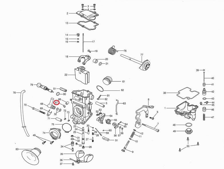 TMR キャブレターマルチ画像中の番号:26TMRシングルキャブレター スモール(Φ28-34)画像中の番号:67TMRシングルキャブレター ビッグ(Φ36-40)画像中の番号:66