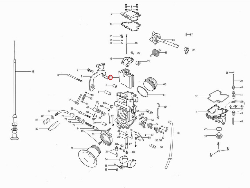 TMR キャブレターマルチ画像中の番号:25TMRシングルキャブレター ビッグ(Φ36-40)画像中の番号:22