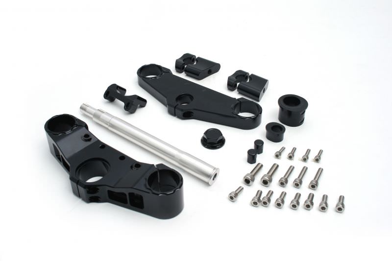 フォークオフセット量:32.5mm・35mmフォークピッチ:204mmホイール:純正寸法(350-17)対応Φ22.2ハンドル用 カラー:ブラック適合車種HONDACB1300スーパーフォア 03~15年 ※ABS不可CB1300スーパーフォア 03~09年 ABS注意点※CB1300スーパーフォア 03~15年(ABSなし):HYPERPRO AH1フロントフォーク(推奨)、純正フロントフォーク対応※HYPERPRO AH1フロントフォークを使用する場合、キャリパーサポートとキャリパーを変更する必要があります。※CB1300スーパーフォア 03~09年(ABS):純正フロントフォークのみ対応ストリートスポーツをコンセプトに開発され、サスペンションとのトータルバランスを考慮した設計。各車両に最適な走行性能を追求し、スポーティーな走りを実現します。一部車種では純正キーシリンダーを移設でき、ハンドルロックも可能です。