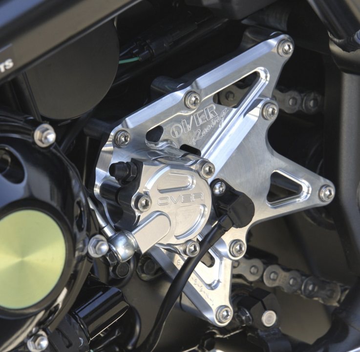 アルミ削り出しスプロケットカバーシルバーアルマイトシフトパターン掘り込み済みフロントチェーンカバー付属取り付けボルト付属STDクラッチ対応OVER製ライトタッチクラッチキット対応(品番84-78-10)画像の一部は、ライトタッチクラッチキットとの同時装着イメージです。