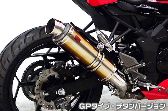 ※サイレンサー部分だけ取り替えるスリップオンタイプの商品です。フルエキゾーストタイプのマフラーではありませんのでご注意ください。※平成22年4月1日より施行された認証制度に適合する認証マフラーではありません。ご理解の程よろしくお願い致します。※受注生産商品となっており、商品手配後 2週間程度入荷にお時間を頂きます。新時代から導き出された究極のイノベーションデザインで非常にインパクトあるマフラーです。消音用のバッフルが2個装備されている【ダブルバッフル仕様】となっており、バッフル無し、バッフル1個装着、バッフル2個装着と3種類の排気音を選べるサウンドセレクトスタイルになっています。バッフルはステンレスタイプとアルミタイプの2種類のバッフルが装備されています。音量はバッフル2個装着時の排気音量が約88db(法定規制値内音量)、バッフル1個装着時の排気音量が 約90db、バッフル非装着時の排気音量が約92db です。音質も耳障りな音でなく重低音のサウンドになっていますので、ノーマルマフラーではちょっと物足りない方にオススメです。サイレンサーはストレート構造ではなく隔壁構造になっていますので、音量は静かめに抑えられており近所迷惑になる事無く安心して走行できます。低中速を落とすことなく高回転でスムーズに回り扱いやすい設定になっています。振動防止のためサイレンサーとエキパイが2分割となる安心設計になっています。サイレンサーは、2点止めになっていますのでしっかりと固定でき、耐久性にも優れています。無加工ボルトオンにて装着できますので、必要な工具があれば簡単に取り付けできます。取り付けに必要なボルト類は全て付属しております。サイレンサーバンドにはスリットタイプを採用してデザインにもこだわっています。サイレンサーの固定にはサイレンサーバンドを採用し、バフ仕上げを施したステンレス製丸棒で組んだステーを介して固定しておりますので、従来のステーの固定より車体と調和した高級感あふれるマフラーです。オールステンレス製で、エキパイからサイレンサーまでバフ仕上げを施しています。【GPタイプ】ブラックアルマイト処理を施したビレットタイプのテールマウントに、シンプルかつレーシーなイメージ。【チタンバージョン】軽量高剛性なチタニウム製パイプにレインボーの焼き色を付けた、非常に高級感の高い仕上がりです。