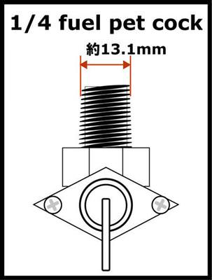 ※車種汎用品のため特定車両への適合は確認ができておりません。汎用のガソリンコック!各汎用タンクに装着可能です差し込み部ネジ径、約13.1mmの汎用ガソリンコック。装着部のサイズを確認の上、適合するコックをお選び下さい!また、ホース取出し口の「ストレート」と「90度」もコックの位置をお確かめの上ご判断下さい◎適合車種汎用色クローム材質合金内容物本体×1
