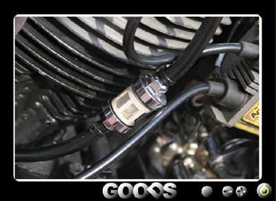 ※車種汎用品のため特定車両への適合は確認ができておりません。不純物をシャットダウン!お洒落なフューエルフィルター1/4インチホース用フューエルフィルター。6mmホースにも使用可。内部清掃可で交換用フィルター付き。タンク~キャブ間のフューエルホースにかませるだけの簡単取り付けです!