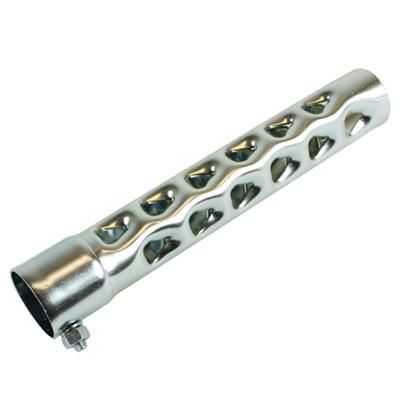 ※車種汎用品のため特定車両への適合は確認ができておりません。長さ8インチのインナーサイレンサー。パイプ内部に取り付けて消音。1-1/2インチ(約38mm)のパイプに使用。○サイズ○長さ:203mm 取り付け外径:35.4mm 取り付けボルトサイズ:1/4-20UNC×1/2○色○クローム○材質○スチール○内容物○本体×1○主な取り付け○汎用
