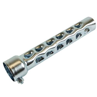 ※車種汎用品のため特定車両への適合は確認ができておりません。長さ8インチのインナーサイレンサー。パイプ内部に取り付けて消音。1-3/4インチ(約45mm)のパイプに使用。○サイズ○長さ:203mm 取り付け外径:40.6mm 取り付けボルトサイズ:1/4-20UNC×1/2○色○クローム○材質○スチール○内容物○本体×1○主な取り付け○汎用