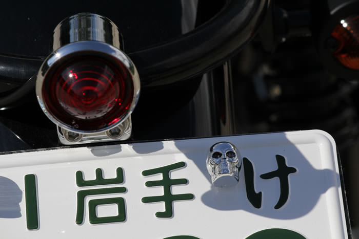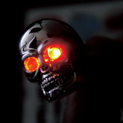 ※車種汎用品のため特定車両への適合は確認ができておりません。ナンバーのボルトを付け替えるだけ!お手軽にドレスアップで人気のナンバーボルトナンバープレートのボルトを本製品に付け替えるだけでお手軽にドレスアップが可能!目が怪しい赤に光るスカル型で、ブレーキランプ連動やニュートラル、常時点灯等使い方はあなた次第!配線色赤:プラス 黒:アース