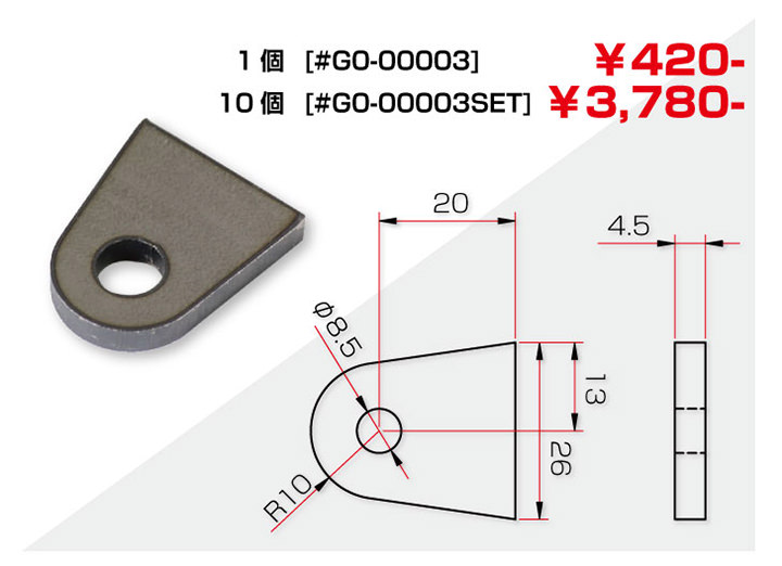 肉厚:3.2mm 幅:26mm 長さ:30mm 穴直径:8.5mm