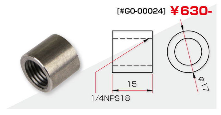 ※車種汎用品のため特定車両への適合は確認ができておりません。溶接用ガソリンコック受けフラットな底形状にオススメ溶接用ガソリンコック受け。コックサイズは1/4NPT。フラットな底形状にオススメのショートタイプ(15mm)。