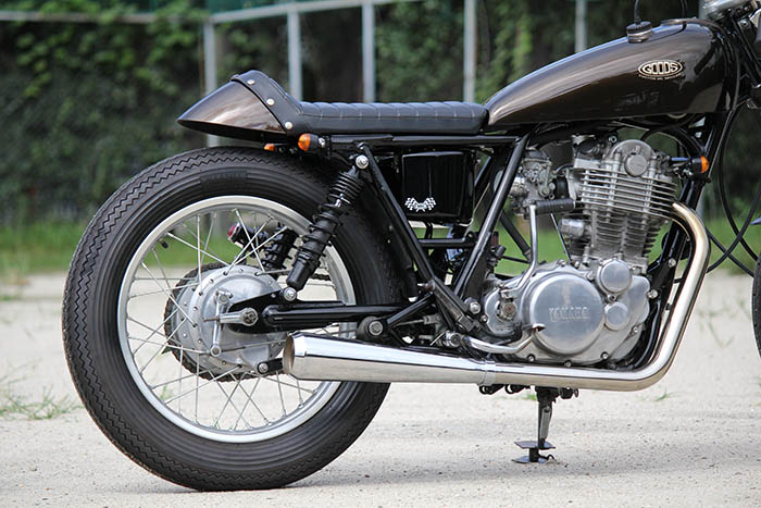 シンプルな縦溝と波状形状のサイドウォールが特徴的なビンテージデザインのタイヤ。