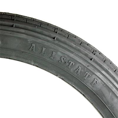 ※車種汎用品のため特定車両への適合は確認ができておりません。オシャレは足元から!タイヤを変えるだけでスタイル性大幅UP!!シンプルな縦溝のビンテージデザインのタイヤ。サイズは2.75-19。ロングフォークやオールドスクールチョッパー等に最適。溝はAVONと比べると細く深い。※ALLSTATEとは1926年から1995年まで存続していたアメリカのタイヤメーカー。