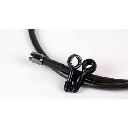 ※車種汎用品のため特定車両への適合は確認ができておりません。ブラックスモークのブレーキホースブラックスモークコーティングのブレーキホースとバンジョー2個のセット。ダイレクトなタッチのステンレスメッシュホース。バンジョー取り付け部は首振り可能。表記の長さについて商品名に記載の長さは金具含めた「全長」となります。両端バンジョーの中心~中心での全長は記載サイズ+約50mmとなります。例)900mm=バンジョー中心全長約950mmご注意下さい※SUZUKI車の一部にはバンジョーのピッチが付属の物と異なる場合があります。その場合は純正のバンジョーボルトをご使用下さい。※バンジョーボルトは別売りもしくは純正を流用。