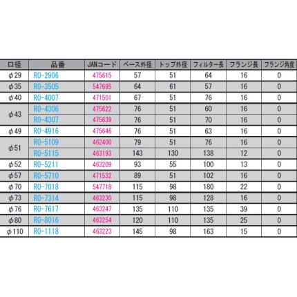※TMR/FCRへの装着には別売りのフィルターアダプターが必要です。※汎用品のため事前にフィルター装着スペースをご確認ください。ラウンドテーパード(ラバートップ)テーパーによって装着スペースを確保したラウンド形状のモデル。口径(mm):Φ35ベース外径(mm):64トップ外径(mm):61フィルター長(mm):57フランジ長(mm):16フランジ角度(度):0