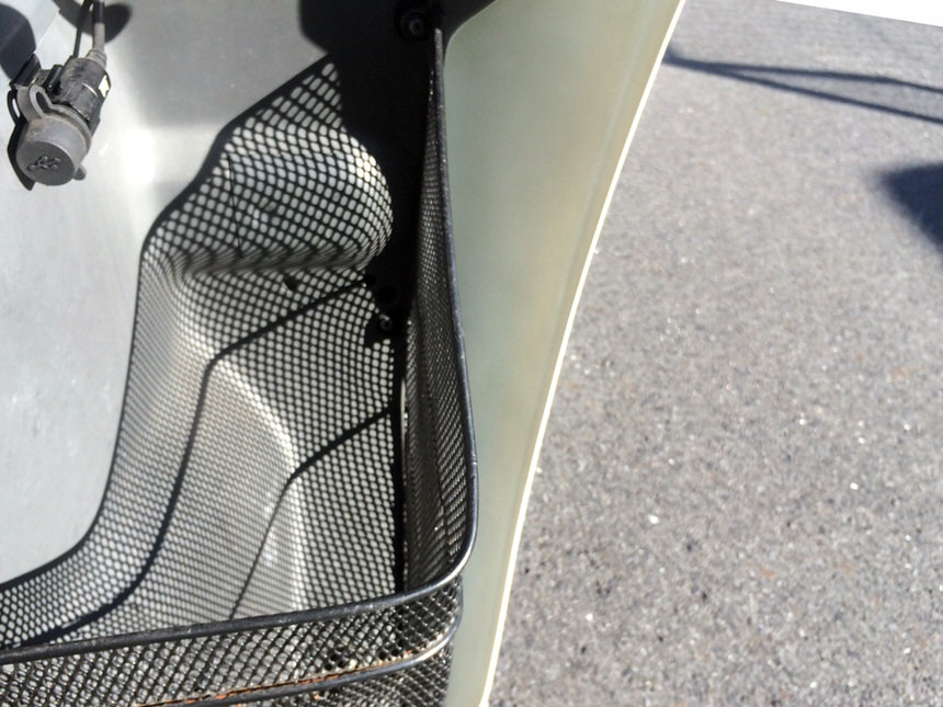 ※装着イメージは白塗装済み商品となります。ジャイロキャノピーは屋根つきのバイクである為、一般的なバイクと比べると雨や風によるライダーの体力消耗を軽減することができます。しかし年間営業日数268日【2015年実績】の築地市場に通う労働者の方々から「手足に風が当たる」という声が多く届きました。ジャイロキャノピーのメーカー純正レッグシールドやナックルガードは販売されておらず、様々な社外パーツを試しましたが満足のいく効果が得られるものがありませんでした。そこでバイクショップハンター監修のもとワールドウォークが開発したのがジャイロキャノピー用レッグシールドです。ナックルバイザーの役目とレッグシールドの両方の役割を果たす為の設計を致しました。築地城内の狭い通路を走行するのに邪魔になってはいけないので実走行を繰り返し出来る限り外に張り出さないで手や足に当たる風を軽減する設計にしました。フロントカウルとの接合部分は切りっぱなしのままでは車体との一体感がないためラウンド成型を採用しました。またグリップ部分までワイドな設計をさいようしたことにより、純正の実用的なゴム部分をFRPで一体成型することで後付感のないスッキリとしたデザインを実現しました。取り付けは車体への穴あけ等は一切なし。錆びにくい付属のステンレスボルトと車体に使用されているボルトのみで装着可能です。使用の体感には個人差がありますのであくまで参考程度ですがレッグシールド装着前に比べて遥かにすねや腿、手に当たる風が軽減されました。無風状態の日などは殆ど体にあたる風を感じません。大雨の日には実走しなかったのでわかりませんが、小雨程度の日に関しては手や足に当たる雨も軽減した印象があります。