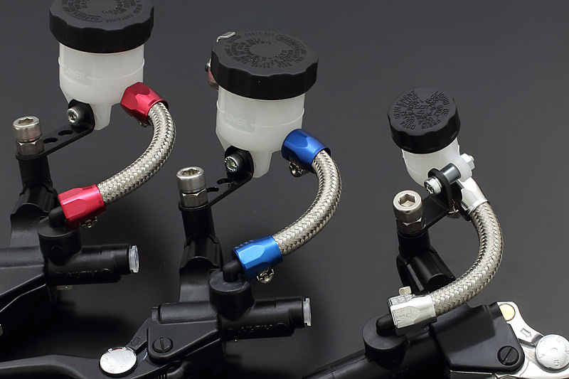 ※欠品時には入荷までに数週間以上のお時間を要する場合がございます。ハンドル周りをレーシーかつハイセンスにモディファイさせるメッシュリモートホースキット。Nissin製のほとんどの別体タンク式マスターシリンダーに使用可能。別売りのアルミマスターシリンダーキャップと併用する事で、さらにクオリティーアップを実現できます。ホース、及びフィッティングには絶大な信頼を誇る米国EARL'S社製です。フィッティングカラーは耐腐食性に優れるブルーとレッドのアルマイト仕上げと、ハイクオリティーな仕上がりのクロームメッキの3ラインナップ。Nissin製マスターシリンダーのType-RS/RC/SR、ラジアル鋳造/鍛造に使用可能。