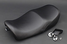 ZEPHYR750のラウンドフォルムを崩す事なく、フューエルタンク~シートカウルまで流麗なフォルムで演出するスタイリッシュシート●カスタムライクなアンコ抜き仕様により、車輌全体をスタイリッシュに演出。 ● レザーパターンはお好みに合わせて選べる、4タイプをラインナップ。● シートベースには十分な強度と耐久性を併せ持つABS (強化プラスチック )を採用。● シートキャッチを標準装備しているので、施錠操作のみのロックオン設計。● 全タイプ約20mmのアンコ抜き仕様とし、足つき性を向上させると同時に、流麗かつスタイリッシュなフォルムを演出。コダワリのシートフォルム「ライダー部の形状」フロントセクションは、純正と比較してフューエルタンクに被さるように約15mm前方向へと伸ばす事により、フューエルタンクへと流れるようなラインを強調させています。サイドセクションは、コーナリング時やニーグリップ時のホールド感を重視し、フューエルタンクとのラインを崩す事なくシャープに演出させています。リアセクションは、長時間走行時の疲労を軽減させながらも、加速時にはトラクションを確実に掛けられるフラット仕上げ。タンデム部の形状タンデムライダーが乗車した際には抜群のホールド感を実現させながら、車輌全体のスタイルを損なう事のない、流れるようなフォルムによりリアビューを際立たせます。