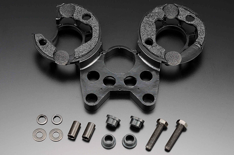 トップブリッジとのマウント部に防振性ダンパーラバーをセットし、従来品より懸案であったリジットマウント式と比較し大幅に耐振性能を向上させました。またラバーマウントされたメーターブラケットは、車体からの振動を吸収し精密機器であるメーター類の耐久性と正確性を同時に向上させます。取り付けに必要なボルト、カラー類も全て付属し無加工で取り付け可能なオールインワンパッケージ。