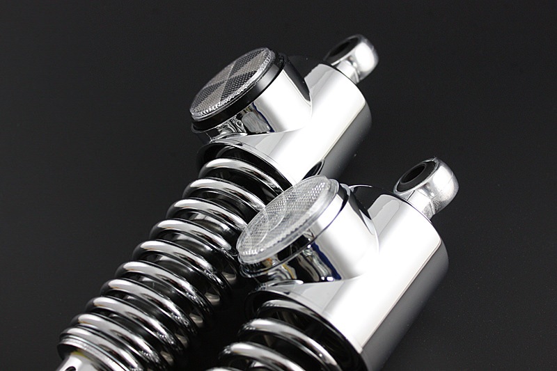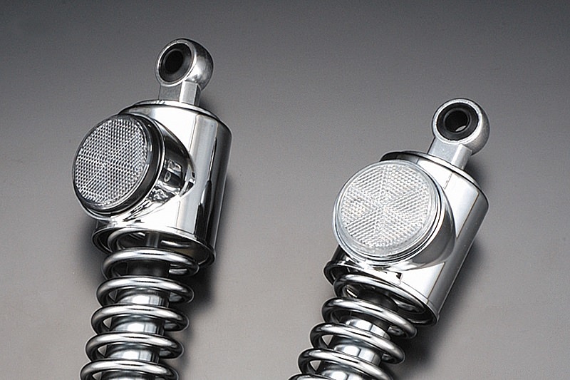 ※メーカー欠品中には入荷までに週週間以上のお時間を要する場合がございます。オリジナル復刻版。プログレッシブ (不等ピッチ )スプリングの採用により、初期作動から1G付近まではやわらかく、1Gからボトムまでは曲線的に硬くなるという、粘り強さを持ったスペシャルサスペンション。バネレートは純正サスペンションと同様の設定とした純正型と、バネレートを15%上げた強化型の2ラインナップ。リフレクターはオレンジ、レッド、クリアの3色に、それぞれブラックリム、メッキリムを用意しました。豊富なバリエーションの中からお好みでお選び下さい。2本セット1台分でのデリバリー。