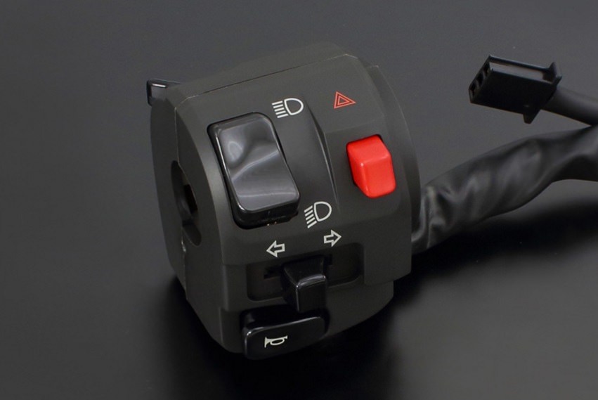 ※メーカー欠品中には入荷までに週週間以上のお時間を要する場合がございます。OW・ZXともに薄型設計とし、セレクテッドスロットルキット装着時の必須アイテム。テキスト表示のOWタイプに加え、アイコン表示のZXタイプをNEWラインナップ。右側スイッチ幅は33mm、左側スイッチ幅は53mm。常時点灯モデルでも、 ヘッドライトはON/ポジション/OFFで切替可能です。カプラーオンのイージーフィットでウィンカーは操作性に優れるプッシュキャンセル式。パッシング機能も装備しています!左右ともに質感のあるマット仕上げの樹脂ボディを使用。ハザード機能を装備し、視認性に優れるアイコンによる機能表示。常時点灯式モデル