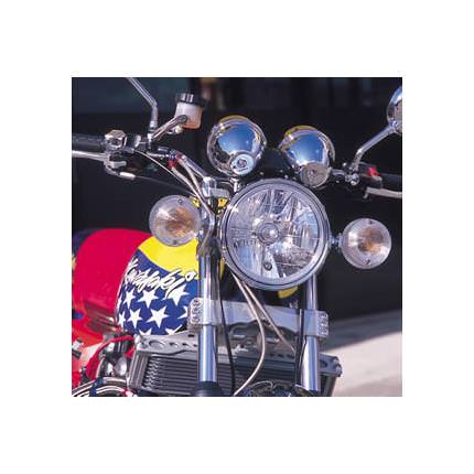 ※メーカー欠品中には入荷までに週週間以上のお時間を要する場合がございます。リフレクター形状の変更により配光性能が飛躍的に向上。前方をより明るく広範囲に照射します。● ヘッドランプ単体のデリバリーの他、高級感溢れるクロームメッキ仕上げのヘッドライトリム付キットとブラックペイントまたは、クロームメッキ仕上げのケースまで付属するシステムキットを用意いたしました。● レンズカラーは、クリアー、ブルー、イエロー、スモークブラックの4ラインナップ。● レンズには強化プラスティックを採用し、抜群の耐久性を実現。● レンズ径は、一般的な180mmです。● 付属のH4バルブは、オールマイティー仕様の12V (55/60W)を採用。● DOT規格をクリアーした車検対応品です。※ ポジションを点灯させる場合、配線の加工が必要となります。