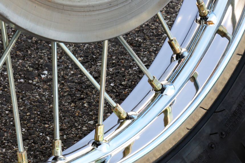 ※メーカー欠品中には入荷までに週週間以上のお時間を要する場合がございます。光り輝くワイヤースポークは、旧車だけに与えられた特権レストアの最重要ポイントとも言える光り輝くメッキリムとの組み合わせはもちろん、軽量アルミリムとの組み合わせも可能な、ワイヤースポークセットをラインナップ。前後1台分1セットでのデリバリー。● 純正同様の少し艶が少ない雰囲気を狙うならユニクロ仕様● 特殊鍛造技術によるハガネ鋼に勝るしなやかさと強度を兼ね備えた、錆に無縁のステンレス仕様