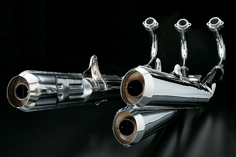 ※メーカー欠品中には入荷までに週週間以上のお時間を要する場合がございます。KAWASAKIトリプルの特徴とも言える3本マフラーを完全復刻。純正同様にエキパイから後方チャンバーに向かってのテーパー形状を忠実に再現。そのフォルムは、美しいクロームメッキと相まって、さながら上質な管楽器のような高級感を醸し出します。 エキパイ、フランジ、ジョイントバンド付。