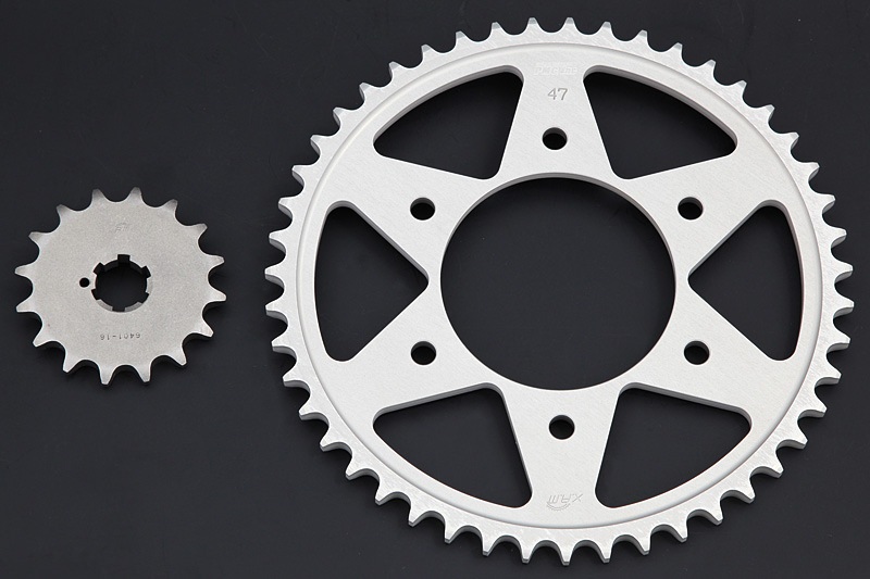 ※メーカー欠品中には入荷までに週週間以上のお時間を要する場合がございます。ドライブスプロケットには高強度クロモリ鋼に浸炭窒化焼入処理を施し耐摩耗性を向上。ドリブンスプロケットはA7075-T6超々ジュラルミンをシルバーアルマイト仕上げ。さらに大胆な肉抜き加工を施したオリジナル・ライトウェイト仕様。純正歯数はもちろん、豊富な歯数設定からお選び頂けます。抜群の耐久性と制度で信頼の高い「X.A.M」製。