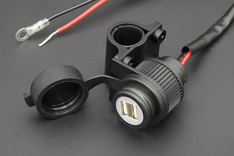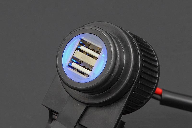 ※メーカー欠品中には入荷までに週週間以上のお時間を要する場合がございます。携帯電話の充電やナビゲーションシステム等で使用できるオートバイ専用設計のコンパクトな電源ユニットシリーズ。シガーソケットタイプやUSBポートタイプ等、用途にあわせてお選びください。配線類も付属しますので12Vバッテリー車輌であれば簡単に取り付け出来ます。Φ22~25mmのパイプにクランプマウント可能。2ラインのUSBポートで同時充電可能。通電時はLEDランプが青く点灯します。