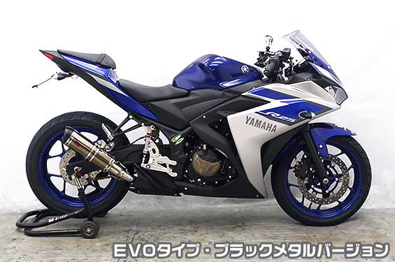 ※サイレンサー部分だけ取り替えるスリップオンタイプの商品です。フルエキゾーストタイプのマフラーではありませんのでご注意ください。※平成22年4月1日より施行された認証制度に適合する認証マフラーではありません。ご理解の程よろしくお願い致します。※受注生産商品となっており、商品手配後 2週間程度入荷にお時間を頂きます。ブラックメタルバージョンはバフ磨きしたステンレスに特殊技法で着色した仕様で、シックで落ち着きのあるイメージです。アルミ素材から削り出したビレットタイプのエンドに、ブラックアルマイト処理を施したEVOタイプ消音用のバッフルが2個装備されている【ダブルバッフル仕様】となっており、バッフル無し、バッフル1個装着、バッフル2個装着と3種類の排気音を選べるサウンドセレクトスタイルになっています。バッフルはステンレスタイプ(EVOタイプはプレートタイプ)とアルミタイプの2種類のバッフルが装備されています。音量はバッフル2個装着時の排気音量が 約86db(約87db)(法定規制値内音量)、バッフル1個装着時の排気音量が 約88db(約89db)、バッフル非装着時の排気音量が 約90db(約92db) です。※( )内の音量はYZF-R3です。音質も耳障りな音でなく重低音のサウンドになっていますので、ノーマルマフラーではちょっと物足りない方にオススメです。サイレンサーはストレート構造ではなく隔壁構造になっていますので、音量は静かめに抑えられており近所迷惑になる事無く安心して走行できます。低中速を落とすことなく高回転でスムーズに回り扱いやすい設定になっています。振動防止のためサイレンサーとエキパイが2分割となる安心設計になっています。サイレンサーは、2点止めになっていますのでしっかりと固定でき、耐久性にも優れています。無加工ボルトオンにて装着できますので、必要な工具があれば簡単に取り付けできます。(取り付けに必要なボルト類は全て付属しております。)テールパイプとエキパイとの接続部分を隠し、空力性能を向上させる ヒートガード を 標準装備 しております。ポリッシュ仕上げ と ブラック仕上げ の 2タイプ をご用意しておりますので、お好みでお選び下さい。本商品はビートガード:ブラック仕様となります。※ヒートガードはノーマルカウル装着車のみ適合します。サイレンサーバンドにはスリットタイプを採用してデザインにもこだわっています。サイレンサーの固定にはサイレンサーバンドを採用し、バフ仕上げを施したステンレス製丸棒で組んだステーを介して固定しておりますので、従来のステーの固定より車体と調和した高級感あふれるマフラーです。オールステンレス製で、エキパイからサイレンサーまでバフ仕上げを施しています。
