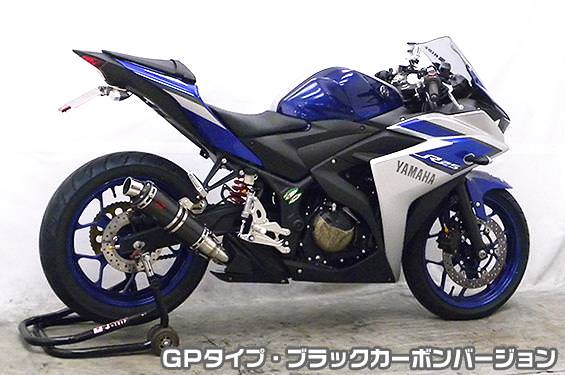 ※サイレンサー部分だけ取り替えるスリップオンタイプの商品です。フルエキゾーストタイプのマフラーではありませんのでご注意ください。※平成22年4月1日より施行された認証制度に適合する認証マフラーではありません。ご理解の程よろしくお願い致します。※受注生産商品となっており、商品手配後 2週間程度入荷にお時間を頂きます。ブラックカーボンバージョンは、ステンレスサイレンサーにカーボンシートを巻いた仕様で、耐久性が抜群に高い構造を採用しています。ブラックアルマイト処理を施したビレットタイプのテールマウントに、シンプルかつレーシーなイメージのGPタイプです。消音用のバッフルが2個装備されている【ダブルバッフル仕様】となっており、バッフル無し、バッフル1個装着、バッフル2個装着と3種類の排気音を選べるサウンドセレクトスタイルになっています。バッフルはステンレスタイプとアルミタイプの2種類のバッフルが装備されています。音量はバッフル2個装着時の排気音量が 約86db(約87db)(法定規制値内音量)、バッフル1個装着時の排気音量が 約88db(約89db)、バッフル非装着時の排気音量が 約90db(約92db) です。※( )内の音量はYZF-R3です。音質も耳障りな音でなく重低音のサウンドになっていますので、ノーマルマフラーではちょっと物足りない方にオススメです。サイレンサーはストレート構造ではなく隔壁構造になっていますので、音量は静かめに抑えられており近所迷惑になる事無く安心して走行できます。低中速を落とすことなく高回転でスムーズに回り扱いやすい設定になっています。振動防止のためサイレンサーとエキパイが2分割となる安心設計になっています。サイレンサーは、2点止めになっていますのでしっかりと固定でき、耐久性にも優れています。無加工ボルトオンにて装着できますので、必要な工具があれば簡単に取り付けできます。(取り付けに必要なボルト類は全て付属しております。)テールパイプとエキパイとの接続部分を隠し、空力性能を向上させる ヒートガード を 標準装備 しております。ポリッシュ仕上げ と ブラック仕上げ の 2タイプ をご用意しておりますので、お好みでお選び下さい。本商品はビートガード:ブラック仕様となります。※ヒートガードはノーマルカウル装着車のみ適合します。サイレンサーバンドにはスリットタイプを採用してデザインにもこだわっています。サイレンサーの固定にはサイレンサーバンドを採用し、バフ仕上げを施したステンレス製丸棒で組んだステーを介して固定しておりますので、従来のステーの固定より車体と調和した高級感あふれるマフラーです。オールステンレス製で、エキパイからサイレンサーまでバフ仕上げを施しています。