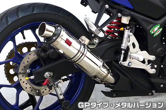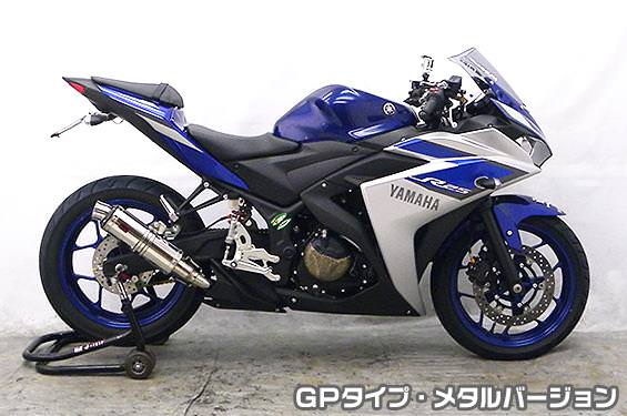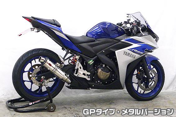 ※サイレンサー部分だけ取り替えるスリップオンタイプの商品です。フルエキゾーストタイプのマフラーではありませんのでご注意ください。※平成22年4月1日より施行された認証制度に適合する認証マフラーではありません。ご理解の程よろしくお願い致します。※受注生産商品となっており、商品手配後 2週間程度入荷にお時間を頂きます。メタルバージョンはステンレスをバフ磨きでピカピカに仕上げています。ブラックアルマイト処理を施したビレットタイプのテールマウントに、シンプルかつレーシーなイメージのGPタイプです。消音用のバッフルが2個装備されている【ダブルバッフル仕様】となっており、バッフル無し、バッフル1個装着、バッフル2個装着と3種類の排気音を選べるサウンドセレクトスタイルになっています。バッフルはステンレスタイプとアルミタイプの2種類のバッフルが装備されています。音量はバッフル2個装着時の排気音量が約86db(約87db)(法定規制値内音量)、バッフル1個装着時の排気音量が約88db(約89db)、バッフル非装着時の排気音量が 約90db(約92db) です。※( )内の音量はYZF-R3です。音質も耳障りな音でなく重低音のサウンドになっていますので、ノーマルマフラーではちょっと物足りない方にオススメです。サイレンサーはストレート構造ではなく隔壁構造になっていますので、音量は静かめに抑えられており近所迷惑になる事無く安心して走行できます。低中速を落とすことなく高回転でスムーズに回り扱いやすい設定になっています。振動防止のためサイレンサーとエキパイが2分割となる安心設計になっています。サイレンサーは、2点止めになっていますのでしっかりと固定でき、耐久性にも優れています。無加工ボルトオンにて装着できますので、必要な工具があれば簡単に取り付けできます。(取り付けに必要なボルト類は全て付属しております。)テールパイプとエキパイとの接続部分を隠し、空力性能を向上させる ヒートガード を 標準装備 しております。ポリッシュ仕上げ と ブラック仕上げ の 2タイプ をご用意しておりますので、お好みでお選び下さい。本商品はビートガード:ブラック仕様となります。※ヒートガードはノーマルカウル装着車のみ適合します。サイレンサーバンドにはスリットタイプを採用してデザインにもこだわっています。サイレンサーの固定にはサイレンサーバンドを採用し、バフ仕上げを施したステンレス製丸棒で組んだステーを介して固定しておりますので、従来のステーの固定より車体と調和した高級感あふれるマフラーです。オールステンレス製で、エキパイからサイレンサーまでバフ仕上げを施しています。