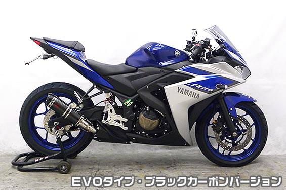 ※サイレンサー部分だけ取り替えるスリップオンタイプの商品です。フルエキゾーストタイプのマフラーではありませんのでご注意ください。※平成22年4月1日より施行された認証制度に適合する認証マフラーではありません。ご理解の程よろしくお願い致します。※受注生産商品となっており、商品手配後 2週間程度入荷にお時間を頂きます。※装着画像のヒートガードの画像はブラック仕上げとなっておりますが実際のお届け商品はポリッシュ仕上げとなります。ご注意くださいませ。ブラックカーボンバージョンは、ステンレスサイレンサーにカーボンシートを巻いた仕様で、耐久性が抜群に高い構造を採用しています。アルミ素材から削り出したビレットタイプのエンドに、ブラックアルマイト処理を施したEVOタイプ消音用のバッフルが2個装備されている【ダブルバッフル仕様】となっており、バッフル無し、バッフル1個装着、バッフル2個装着と3種類の排気音を選べるサウンドセレクトスタイルになっています。バッフルはステンレスタイプ(EVOタイプはプレートタイプ)とアルミタイプの2種類のバッフルが装備されています。音量はバッフル2個装着時の排気音量が 約86db(約87db)(法定規制値内音量)、バッフル1個装着時の排気音量が 約88db(約89db)、バッフル非装着時の排気音量が 約90db(約92db) です。※( )内の音量はYZF-R3です。音質も耳障りな音でなく重低音のサウンドになっていますので、ノーマルマフラーではちょっと物足りない方にオススメです。サイレンサーはストレート構造ではなく隔壁構造になっていますので、音量は静かめに抑えられており近所迷惑になる事無く安心して走行できます。低中速を落とすことなく高回転でスムーズに回り扱いやすい設定になっています。振動防止のためサイレンサーとエキパイが2分割となる安心設計になっています。サイレンサーは、2点止めになっていますのでしっかりと固定でき、耐久性にも優れています。無加工ボルトオンにて装着できますので、必要な工具があれば簡単に取り付けできます。(取り付けに必要なボルト類は全て付属しております。)テールパイプとエキパイとの接続部分を隠し、空力性能を向上させる ヒートガード を 標準装備 しております。ポリッシュ仕上げ と ブラック仕上げ の 2タイプ をご用意しておりますので、お好みでお選び下さい。本商品はビートガード:ポリッシュ仕様となります。(画像はブラック仕様ですがこちらの商品の仕様ははポリッシュとなります。)※ヒートガードはノーマルカウル装着車のみ適合します。サイレンサーバンドにはスリットタイプを採用してデザインにもこだわっています。サイレンサーの固定にはサイレンサーバンドを採用し、バフ仕上げを施したステンレス製丸棒で組んだステーを介して固定しておりますので、従来のステーの固定より車体と調和した高級感あふれるマフラーです。オールステンレス製で、エキパイからサイレンサーまでバフ仕上げを施しています。