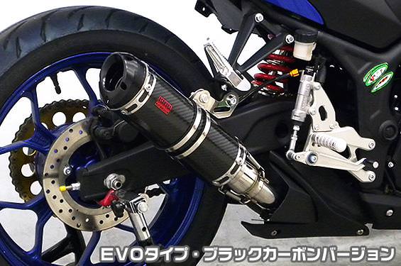 ※サイレンサー部分だけ取り替えるスリップオンタイプの商品です。フルエキゾーストタイプのマフラーではありませんのでご注意ください。※平成22年4月1日より施行された認証制度に適合する認証マフラーではありません。ご理解の程よろしくお願い致します。※受注生産商品となっており、商品手配後 2週間程度入荷にお時間を頂きます。ブラックカーボンバージョンは、ステンレスサイレンサーにカーボンシートを巻いた仕様で、耐久性が抜群に高い構造を採用しています。アルミ素材から削り出したビレットタイプのエンドに、ブラックアルマイト処理を施したEVOタイプ消音用のバッフルが2個装備されている【ダブルバッフル仕様】となっており、バッフル無し、バッフル1個装着、バッフル2個装着と3種類の排気音を選べるサウンドセレクトスタイルになっています。バッフルはステンレスタイプ(EVOタイプはプレートタイプ)とアルミタイプの2種類のバッフルが装備されています。音量はバッフル2個装着時の排気音量が 約86db(約87db)(法定規制値内音量)、バッフル1個装着時の排気音量が 約88db(約89db)、バッフル非装着時の排気音量が 約90db(約92db) です。※( )内の音量はYZF-R3です。音質も耳障りな音でなく重低音のサウンドになっていますので、ノーマルマフラーではちょっと物足りない方にオススメです。サイレンサーはストレート構造ではなく隔壁構造になっていますので、音量は静かめに抑えられており近所迷惑になる事無く安心して走行できます。低中速を落とすことなく高回転でスムーズに回り扱いやすい設定になっています。振動防止のためサイレンサーとエキパイが2分割となる安心設計になっています。サイレンサーは、2点止めになっていますのでしっかりと固定でき、耐久性にも優れています。無加工ボルトオンにて装着できますので、必要な工具があれば簡単に取り付けできます。(取り付けに必要なボルト類は全て付属しております。)テールパイプとエキパイとの接続部分を隠し、空力性能を向上させる ヒートガード を 標準装備 しております。ポリッシュ仕上げ と ブラック仕上げ の 2タイプ をご用意しておりますので、お好みでお選び下さい。本商品はビートガード:ブラック仕様となります。※ヒートガードはノーマルカウル装着車のみ適合します。サイレンサーバンドにはスリットタイプを採用してデザインにもこだわっています。サイレンサーの固定にはサイレンサーバンドを採用し、バフ仕上げを施したステンレス製丸棒で組んだステーを介して固定しておりますので、従来のステーの固定より車体と調和した高級感あふれるマフラーです。オールステンレス製で、エキパイからサイレンサーまでバフ仕上げを施しています。