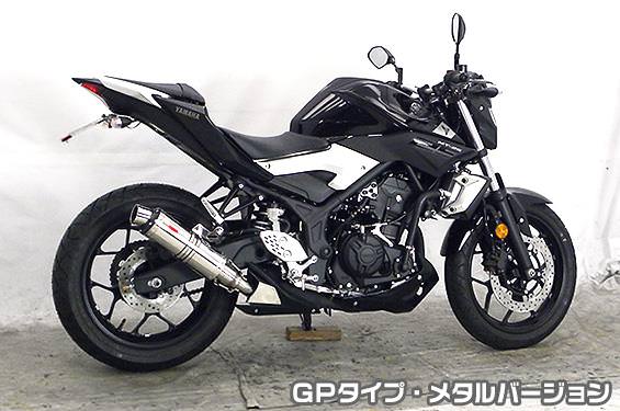 ※サイレンサー部分だけ取り替えるスリップオンタイプの商品です。フルエキゾーストタイプのマフラーではありませんのでご注意ください。※平成22年4月1日より施行された認証制度に適合する認証マフラーではありません。ご理解の程よろしくお願い致します。※受注生産商品となっており、商品手配後 2週間程度入荷にお時間を頂きます。メタルバージョンはステンレスをバフ磨きでピカピカに仕上げています。ブラックアルマイト処理を施したビレットタイプのテールマウントに、シンプルかつレーシーなイメージのGPタイプです。消音用のバッフルが2個装備されている【ダブルバッフル仕様】となっており、バッフル無し、バッフル1個装着、バッフル2個装着と3種類の排気音を選べるサウンドセレクトスタイルになっています。バッフルはステンレスタイプとアルミタイプの2種類のバッフルが装備されています。音量はバッフル2個装着時の排気音量が約86db(約87db)(法定規制値内音量)、バッフル1個装着時の排気音量が約88db(約89db)、バッフル非装着時の排気音量が 約90db(約92db) です。※( )内の音量はMT-03です。音質も耳障りな音でなく重低音のサウンドになっていますので、ノーマルマフラーではちょっと物足りない方にオススメです。サイレンサーはストレート構造ではなく隔壁構造になっていますので、音量は静かめに抑えられており近所迷惑になる事無く安心して走行できます。低中速を落とすことなく高回転でスムーズに回り扱いやすい設定になっています。振動防止のためサイレンサーとエキパイが2分割となる安心設計になっています。サイレンサーは、2点止めになっていますのでしっかりと固定でき、耐久性にも優れています。無加工ボルトオンにて装着できますので、必要な工具があれば簡単に取り付けできます。(取り付けに必要なボルト類は全て付属しております。)テールパイプとエキパイとの接続部分を隠し、空力性能を向上させる ヒートガード を 標準装備 しております。ポリッシュ仕上げ と ブラック仕上げ の 2タイプ をご用意しておりますので、お好みでお選び下さい。本商品はビートガード:ブラック仕様となります。※ヒートガードはノーマルカウル装着車のみ適合します。サイレンサーバンドにはスリットタイプを採用してデザインにもこだわっています。サイレンサーの固定にはサイレンサーバンドを採用し、バフ仕上げを施したステンレス製丸棒で組んだステーを介して固定しておりますので、従来のステーの固定より車体と調和した高級感あふれるマフラーです。オールステンレス製で、エキパイからサイレンサーまでバフ仕上げを施しています。