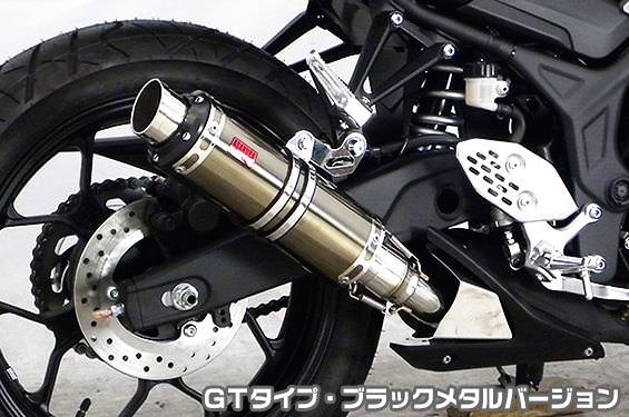 ※サイレンサー部分だけ取り替えるスリップオンタイプの商品です。フルエキゾーストタイプのマフラーではありませんのでご注意ください。※平成22年4月1日より施行された認証制度に適合する認証マフラーではありません。ご理解の程よろしくお願い致します。※受注生産商品となっており、商品手配後 2週間程度入荷にお時間を頂きます。※装着画像のヒートガードの画像はブラック仕上げとなっておりますが実際のお届け商品はポリッシュ仕上げとなります。ご注意くださいませ。ブラックメタルバージョンはバフ磨きしたステンレスに特殊技法で着色した仕様で、シックで落ち着きのあるイメージです。ブラックアルマイト処理を施したビレットタイプのテールマウントに、シンプルかつレーシーなイメージのGTタイプです。消音用のバッフルが2個装備されている【ダブルバッフル仕様】となっており、バッフル無し、バッフル1個装着、バッフル2個装着と3種類の排気音を選べるサウンドセレクトスタイルになっています。バッフルはステンレスタイプとアルミタイプの2種類のバッフルが装備されています。音量はバッフル2個装着時の排気音量が 約86db(約87db)(法定規制値内音量)、バッフル1個装着時の排気音量が 約88db(約89db)、バッフル非装着時の排気音量が 約90db(約92db) です。※( )内の音量はMT-03です。音質も耳障りな音でなく重低音のサウンドになっていますので、ノーマルマフラーではちょっと物足りない方にオススメです。サイレンサーはストレート構造ではなく隔壁構造になっていますので、音量は静かめに抑えられており近所迷惑になる事無く安心して走行できます。低中速を落とすことなく高回転でスムーズに回り扱いやすい設定になっています。振動防止のためサイレンサーとエキパイが2分割となる安心設計になっています。サイレンサーは、2点止めになっていますのでしっかりと固定でき、耐久性にも優れています。無加工ボルトオンにて装着できますので、必要な工具があれば簡単に取り付けできます。(取り付けに必要なボルト類は全て付属しております。)テールパイプとエキパイとの接続部分を隠し、空力性能を向上させる ヒートガード を 標準装備 しております。ポリッシュ仕上げ と ブラック仕上げ の 2タイプ をご用意しておりますので、お好みでお選び下さい。本商品はビートガード:ポリッシュ仕様となります。(画像はブラック仕様ですがこちらの商品の仕様ははポリッシュとなります。)※ヒートガードはノーマルカウル装着車のみ適合します。サイレンサーバンドにはスリットタイプを採用してデザインにもこだわっています。サイレンサーの固定にはサイレンサーバンドを採用し、バフ仕上げを施したステンレス製丸棒で組んだステーを介して固定しておりますので、従来のステーの固定より車体と調和した高級感あふれるマフラーです。オールステンレス製で、エキパイからサイレンサーまでバフ仕上げを施しています。