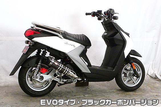 ※2015年6月発売の台湾ヤマハ製 BW'S R125、2016年1月発売の日本国内モデル BW’S125【車体型式:EBJ-SEA6J/エンジン型式:E3T5E】に適合します。※エキパイに排気濃度センサー(O2センサー)取付け口が付きますので、ノーマルのセンサーが装着できるようになっております。※平成22年4月1日より施行された認証制度に適合する認証マフラーではありません。ご理解の程よろしくお願い致します。※受注生産商品となっており、商品手配後 2週間程度入荷にお時間を頂きます。ブラックカーボンバージョンは、ステンレスサイレンサーにカーボンシートを巻いた仕様で、耐久性が抜群に高い構造を採用しています。排気口はビレットタイプのエンドに、ブラックアルマイト処理を施したEVOタイプ消音用のバッフルが2個装備されているダブルバッフル仕様となっており、バッフル無し、バッフル1個装着、バッフル2個装着と3種類の排気音を選べるサウンドセレクトスタイルになっています。バッフルはステンレスタイプ(EVOタイプはプレートタイプ)とアルミタイプの2種類のバッフルが装備されています。音量はバッフル2個装着時の排気音量が 約85db(法定規制値内音量)、バッフル1個装着時の排気音量が 約87db、バッフル非装着時の排気音量が 約89db です。音質も耳障りな音でなく重低音のサウンドになっていますので、ノーマルマフラーではちょっと物足りない方にオススメです。サイレンサーはストレート構造ではなく隔壁構造になっていますので、音量は静かめに抑えられており近所迷惑になる事無く安心して走行できます。低中速を落とすことなく高回転でスムーズに回り扱いやすい設定になっています。振動防止のためサイレンサーとエキパイが2分割となる安心設計になっています。サイレンサーは、2点止めになっていますのでしっかりと固定でき、耐久性にも優れています。無加工ボルトオンにて装着できますので、必要な工具があれば簡単に取り付けできます。(取り付けに必要なボルト類は全て付属しております。)サイレンサーバンドにはスリットタイプを採用してデザインにもこだわっています。サイレンサーの固定にはサイレンサーバンドを採用し、バフ仕上げを施したステンレス製丸棒で組んだステーを介して固定しておりますので、従来のステーの固定より車体と調和した高級感あふれるマフラーです。オールステンレス製で、エキパイからサイレンサーまでバフ仕上げを施しています。ローダウンにも対応しておりますので、安心してご使用下さい。