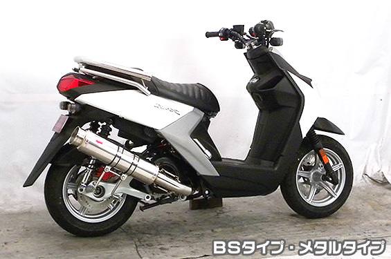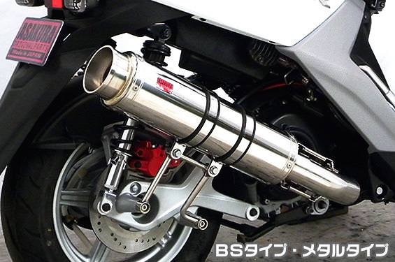 ※2015年6月発売の台湾ヤマハ製 BW'S R125、2016年1月発売の日本国内モデル BW’S125【車体型式:EBJ-SEA6J/エンジン型式:E3T5E】に適合します。※エキパイに排気濃度センサー(O2センサー)取付け口が付きますので、ノーマルのセンサーが装着できるようになっております。※平成22年4月1日より施行された認証制度に適合する認証マフラーではありません。ご理解の程よろしくお願い致します。※受注生産商品となっており、商品手配後 2週間程度入荷にお時間を頂きます。大柄なビッグスクーターの車体にマッチするよう、極太のエキパイ60mm径、サイレンサー110mm径という仕様で、バランスのとれた仕上がりなっています。メタルタイプはステンレスをバフ磨きでピカピカに仕上げています。排気口はステンレス削りだし部材を採用し無骨で迫力のあるBSタイプサイレンサーバンドにはスリットタイプを採用してデザインにもこだわっています。サイレンサーの固定にはサイレンサーバンドを採用し、バフ仕上げを施したステンレス製丸棒で組んだステーを介して固定しておりますので、従来のステーの固定より車体と調和した高級感あふれるマフラーです。オールステンレス製で、エキパイからサイレンサーまでバフ仕上げを施しています。低中速を落とすことなく高回転でスムーズに回り扱いやすい設定になっています。振動防止のためサイレンサーとエキパイが2分割となる安心設計になっています。サイレンサーは、2点止めになっていますのでしっかりと固定でき、耐久性にも優れています。無加工ボルトオンにて装着できますので、必要な工具があれば簡単に取り付けできます。(取り付けに必要なボルト類は全て付属しております。)サイレンサーはストレート構造ではなくフロント部にパンチングを施した作りになっていますので、音量は静かめに抑えられており近所迷惑になる事無く安心して走行できます。バッフル装着時 約86db(法定規制値内音量)、バッフル非装着時 約89dbになります。ローダウンにも対応しておりますので、安心してご使用下さい。