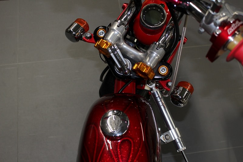 モンキーは車重が軽い上、エンジンからの振動の影響を受けやすい為、ステアリングダンパーを取り付けすることで、ハンドルのフラつきを抑えライダーの疲労を軽減します。滑らかな動作と16段階のダンパー調整機構つきのため、セッティングの幅も十分です。ホンダ純正フロントフォーク対応のステアリングダンパーセットです。アルミ製ブラケットがセットのため、取り付けは簡単に行えます。走行安定性をアップさせ、余計なハンドルのブレを抑えます。【取り付けについて】純正フロントフォークに対応するブラケットセットです。ゴム板は使用せずに取り付けが可能です。クランプ径φ34mmのため純正以外のフロントフォークは市販のゴム板調整が必要です。【セット内容】ステアリングダンパー本体・・・1ヶアルミ製フレームブラケット・・・1ヶアルミ製フロントパイプアウターブラケットφ34mm・・・1ヶ六角ナットM8・・・1ヶ平ワッシャーM5・・・1ヶ平ワッシャーM8・・・1ヶスプリングワッシャーM8・・・1ヶフランジキャップボルト(半ネジ)M8×35・・・1ヶキャップボルト(半ネジ)M5×40mm・・・1ヶアルミ製カラーシルバーφ15.8×φ8.1×10mm・・・1ヶアルミ製カラーレッドφ11×φ5.1×20mm・・・1ヶ