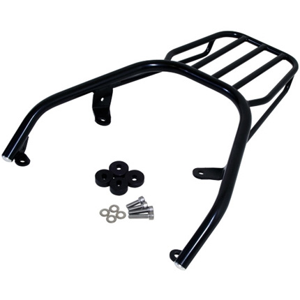荷物を固定するフック付き専用リアキャリア。タンデムバーとしても使い易い設計。標準グラブバーを外しての装着となります。