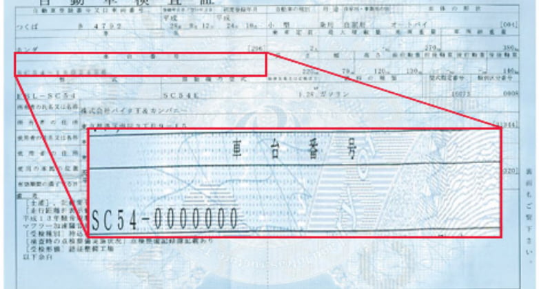 車台番号の箇所がしっかり確認できるように撮影してください。