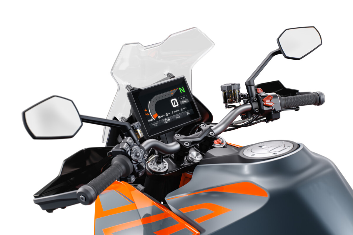 KTM 1290 SUPER DUKE GTはグラフィックを一新するとともに、新たに7インチの大型TFTディスプレイと新型スイッチを採用することで、様々な電子制御装置を簡単で直感的に操作できるようになりました。また最大出力175 PS・最大トルク141 Nmを発揮して、県境や国境線を軽やかに駆け抜けます。
